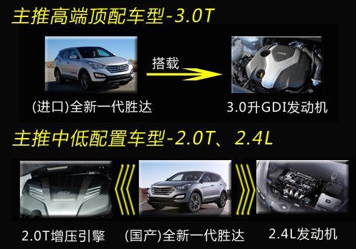 現(xiàn)代汽車(中國)整車銷售本部市場部經(jīng)理李美蘭表示:第三代勝達(dá)先期以進(jìn)口的方式引入,動力上將搭載全新的3.0升GDI缸內(nèi)直噴發(fā)動機(jī)。國產(chǎn)進(jìn)口兩款車型的共同推出表示將共同布局中級SUV的細(xì)分市場,進(jìn)一步提升市場份額。