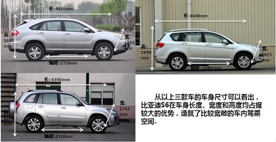 SUV車型在國內(nèi)持續(xù)走俏,其優(yōu)于傳統(tǒng)轎車的關(guān)鍵在于寬大的車身所帶來的寬敞、舒適的車內(nèi)空間,這也構(gòu)成了SUV車型的最大賣點(diǎn)之一。擁有一輛“大塊頭”SUV,不僅看起來氣勢逼人,同時也滿足了車主對于載人、載物的雙重需求。自主品牌SUV車型中的前三甲——比亞迪S6、哈弗H6、奇瑞瑞虎,在激烈的車型競爭中脫穎而出,成為人們的購車首選。這三款車中,誰是真正的自主品牌SUV空間之王?下面就讓我們分別從外觀尺寸、乘坐空間和儲物空間三方面加以詳解。