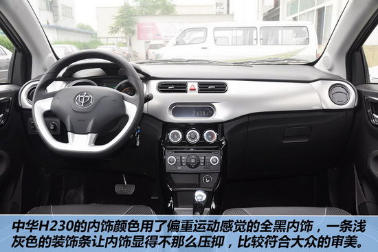 與外觀相比,中華H230的內(nèi)飾設(shè)計(jì)偏向于運(yùn)動(dòng)化,三輻式方向盤還帶有金屬裝飾,檔次感提升了不少。