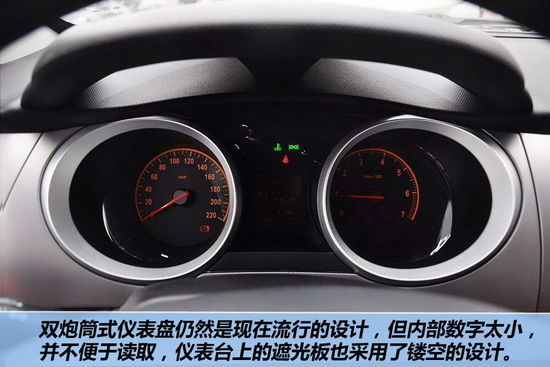 橙色的雙圓形儀表看上去也很動(dòng)感,而且還配備了行車電腦顯示。包括還帶有一點(diǎn)點(diǎn)運(yùn)動(dòng)風(fēng)格的座椅設(shè)計(jì),非常適合年輕人的口味。