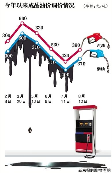 新京報(bào)訊 (記者鐘晶晶)國(guó)際油價(jià)在8月10日國(guó)內(nèi)油價(jià)上調(diào)之后持續(xù)震蕩走高,讓年內(nèi)國(guó)內(nèi)油價(jià)第4次上調(diào)越來越近。