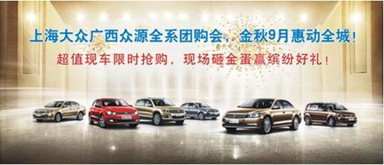 (廣西汽車(chē)網(wǎng) 訊)金秋九月,廣西眾源攜手上海大眾超強(qiáng)陣容亮相北部灣(南寧)第九屆汽車(chē)展。7-9日上海大眾全系惠動(dòng)全城,天天暢享車(chē)展鉅惠,帕薩特最高優(yōu)惠25800元、朗逸10.88萬(wàn)元起、Polo 7.69萬(wàn)元起!