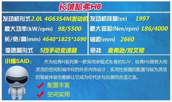 動力方面,采用了成熟的2.0L三菱4G63系列自然吸氣發(fā)動機,最大功率98千瓦,最大扭矩為186牛米,搭配傳統(tǒng)的五速手動變速箱,H6還配置4擋手自一體變速箱,檔位數(shù)上確實有些少,但是檔桿精致的做工還是非常不錯的。
