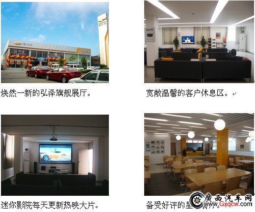 弘澤雪佛蘭地處快環(huán)邊上的南站汽車廣場(chǎng),交通便利,停車方便。展廳占地約8000平方米,按雪佛蘭最新旗艦標(biāo)準(zhǔn)建造,擁有溫馨親切的銷售展廳,還有五星級(jí)客戶休息區(qū),室內(nèi)影院,休閑書吧,迷你網(wǎng)吧,以及星級(jí)標(biāo)準(zhǔn)餐廳,給予車主家一般的關(guān)懷,讓購車、用車成為榮耀享受。