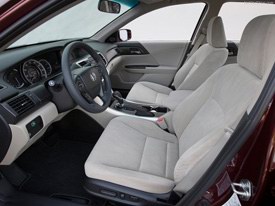 內(nèi)飾方面,全新的中控臺相比現(xiàn)款車型更加簡潔。很多的方形元素融入,中控面板圍繞著一圈銀色鍍鉻裝飾按鍵顯得更加清晰。同時還多了一個按鈕控制面板,用來控制影音和導(dǎo)航系統(tǒng)。中控臺上方并配備了一塊8寸高分辨率彩色大屏。新增的娛樂信息系統(tǒng),Pandora網(wǎng)絡(luò)電臺是最大亮點。簡潔的儀表盤中央加入了一塊行車電腦顯示屏,多功能風(fēng)向盤變化不大采用了更符人體工程學(xué)設(shè)計,同時還在在運動款車型及Coupe車型還將配備換擋撥片。新車還將配備藍牙電話。倒車影像也成了2013款雅閣的標(biāo)準(zhǔn)配置。