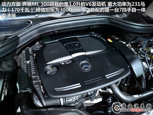 動力方面,奔馳ML300搭載3.0L V6發(fā)動機,最大功率為231馬力,峰值扭矩為300Nm,與之匹配的是一臺7擋手自一體變速箱。同時,全新ML標配了4MATIC全時四驅(qū)系統(tǒng)。