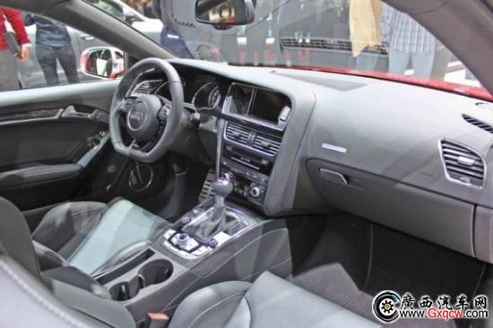 動力性能方面,改款奧迪RS5并沒有采用奧迪車系目前主打的渦輪增壓動力,而是搭載了一臺4.2FSI V8自然吸氣發(fā)動機,最大輸出功率450馬力,高出S5多達117馬力馬力,最大扭矩則為430牛米,動力上要強于寶馬的M3。配合7速雙離合變速箱后,RS5的百公里加速時間為4.6秒。RS5的quattro四驅系統(tǒng)配備了新的crown-gear中央限滑差速器,通過鎖止差速器,四驅系統(tǒng)可將最多70%的動力傳遞至前軸,或是將85%的動力輸送至后軸,從而保持車型始終具有最佳的行駛穩(wěn)定性。傳動方面,奧迪RS5依舊采用了保持性能突出的7速雙離合器變速器,它在反應速度和節(jié)油上的表現(xiàn)均要好于同級別車型。