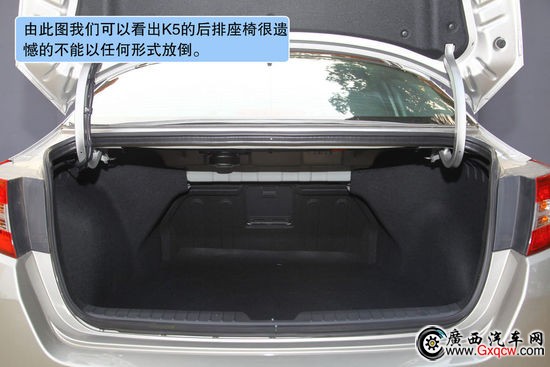 起亞K5的軸距為2795mm,僅比奔騰B90多了1厘米多,空間上的表現(xiàn)相差無幾,對于正常男性成年來說,前后排同樣為一拳的頭部空間,后排有多于兩拳的腿部空間。而K5后排中間座椅的鼓包相對較小,乘坐舒適度稍微高一些。