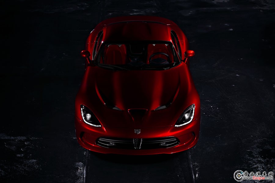 在外觀上,新款蝰蛇車型的車頭線條部分設(shè)計充分的借鑒了仿生學(xué),在某個角度看起來好似蛇的頭部造型。新的大燈造型配以LED日間行車燈看起來更加的兇狠,而代表道奇標(biāo)志的十字形中網(wǎng)隔柵更是體現(xiàn)了新的特點(diǎn)。帶有散熱孔的引擎罩可以提供更好的散熱效率。