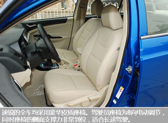 作為比亞迪品質(zhì)戰(zhàn)略轉(zhuǎn)型后推出的準(zhǔn)B級新銳家轎,速銳的每一處設(shè)計(jì)都體現(xiàn)出比亞迪的用心。從其座椅設(shè)計(jì)就可見一斑,全系車型均采用豪華皮質(zhì)座椅,高配車型的主駕駛座椅更是配備了8向電動調(diào)節(jié),同級別車中少見。
