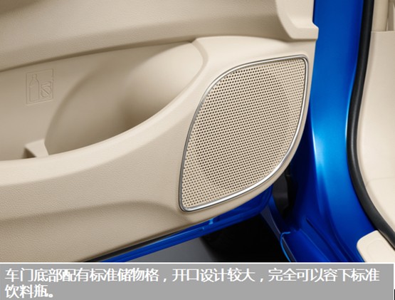 從儲物功能來看,速銳可以算是一款注重實(shí)用性的車型,有多達(dá)18處的儲物設(shè)計(jì),充分滿足駕乘人員“隨手放”的可能。首先是前車門,速銳前車門開啟角度較大,方便乘客上下車,前車門底部配有標(biāo)準(zhǔn)儲物格,開口設(shè)計(jì)較大,可以容下標(biāo)準(zhǔn)飲料瓶。
