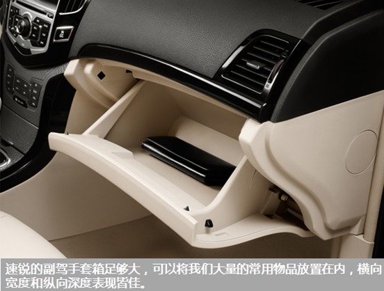 中控臺底部的儲物格容積也不小,可以容納例如票據(jù)等物品。副駕手套箱也足夠大,橫向?qū)挾群涂v向深度表現(xiàn)俱佳?梢詫⑽覀兇罅康某S梦锲贩胖迷趦(nèi)。