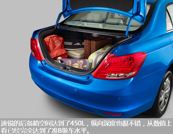 速銳的后備箱空間達(dá)到了450L,不僅數(shù)值完全達(dá)到了準(zhǔn)B級車水平,使用起來也確實“很能裝”。后備箱開口很大,縱向深度也很不錯,放了兩個大行李箱、一個大背包、各種采購的物品以及運(yùn)動用品后,還有很多剩余空間。而且,速銳還在原來keyless無鑰匙系統(tǒng)的已有功能上增加了行李箱無鑰匙開啟功能,只需輕按微動開關(guān)就可以輕松打開行李箱,非常智能便捷。
