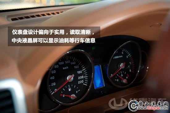 試駕的高配車(chē)型采用的木質(zhì)與真皮包裹方向盤(pán)給人提供了不錯(cuò)的質(zhì)感,尺寸在SUV車(chē)型中中規(guī)中矩,多功能按鍵提供了定速巡航調(diào)節(jié)等功能,操作較為順手。儀表盤(pán)設(shè)計(jì)偏向于實(shí)用,讀取清晰,中央液晶屏可以顯示油耗等行車(chē)信息。