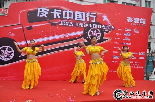 “2012皮卡中國行——主流皮卡走進中國特色之鄉(xiāng)”蒼溪站活動,于9月15日在蒼溪電影院停車場正是拉開帷幕,此次活動有來自江淮、江鈴、海格、長城、黃海、福田六大中國主流皮卡品牌的15款車亮相蒼溪,給當(dāng)?shù)厥忻穹钌狭艘粓鼍澜^倫的皮卡文化盛宴。