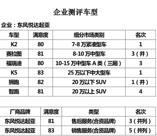 “中國(guó)汽車行業(yè)用戶滿意度測(cè)評(píng)(CACSI)”由中國(guó)質(zhì)量協(xié)會(huì)、全國(guó)用戶委員會(huì)主辦,采用先進(jìn)的滿意度模型評(píng)定,旨在通過用戶評(píng)價(jià)發(fā)現(xiàn)各品牌車型的優(yōu)勢(shì)與不足,為用戶提供購(gòu)車參考,同時(shí)也為企業(yè)的質(zhì)量改進(jìn)提供信息,具有極高的權(quán)威性。另外,滿足個(gè)性化需求和用戶感知價(jià)值也是本次用戶滿意度調(diào)查的兩項(xiàng)重要指標(biāo)。東風(fēng)悅達(dá)起亞能取得如此優(yōu)異的成績(jī),充分顯示出企業(yè)在今年無論品質(zhì)和服務(wù)方面都得到了進(jìn)一步提升。