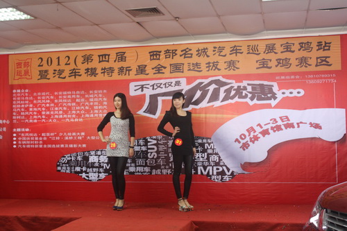 2012年9月23日下午15時(shí),2012(第四屆)西部名城汽車巡展寶雞站暨汽車模特新星全國(guó)選拔賽-寶雞賽區(qū)-復(fù)賽階段,在寶雞市體育場(chǎng)凌云車城內(nèi)閃亮登場(chǎng)。