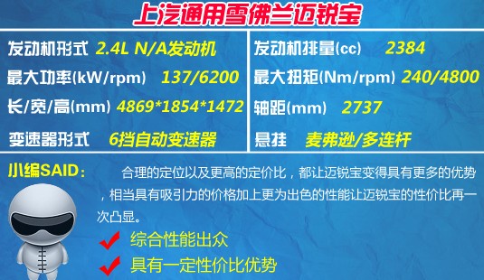 最近雪佛蘭官方宣布,旗下邁銳寶車(chē)型開(kāi)展市場(chǎng)促銷(xiāo)措施,全系優(yōu)惠2-2.5萬(wàn)元。