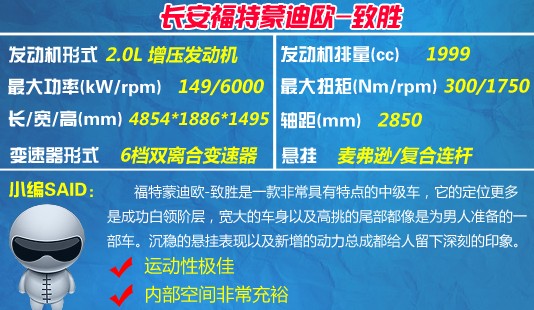 致勝最大的改變來源于采用了動力強勁的2.0T發(fā)動機,依靠渦輪增壓和直噴兩項技術的共同作用,GTDi200車型的最大功率、扭矩可以達到149kw/6000rpm、300Nm/1750~4500rpm;GTDi240車型的數(shù)據(jù)更是高達176.5/6000rpm、340Nm/1900~3500rpm。據(jù)介紹,其綜合油耗僅為7.9L/100km,這比上一代車型10L/100km的油耗大幅下降,如此優(yōu)秀的成績得益于新致勝使用的PowerShift 6速雙離合變速箱,這款由福特集團和德國格特拉克Getrag公司共同開發(fā)的產(chǎn)品,采用了濕式離合器設計并且都帶有坡道起步輔助功能,這款變速箱的最大允許扭矩為450Nm,最高允許轉速為6500rpm。