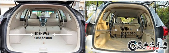 從數(shù)據(jù)來看,比亞迪S6的后備箱容積遙遙領(lǐng)先于H6,1084/2400L的空間足以讓它笑傲群雄。哈弗H6的后備箱容積為808/2010L,雖然比部分車型大寬敞,但比起S6來還是遜色不少。