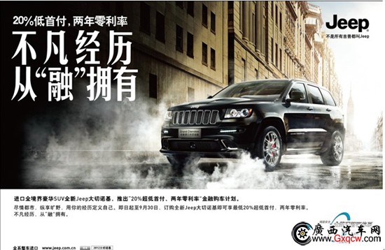 進(jìn)入十月,中國(guó)SUV銷量持續(xù)增長(zhǎng),借此勢(shì)頭購(gòu)入愛(ài)車正是好時(shí)機(jī)。全新進(jìn)口Jeep®大切諾基在引領(lǐng)高端SUV全能表現(xiàn)的同時(shí),其獨(dú)特的品牌魅力更吸引著高端精英人士的目光,此次延續(xù)的定制化尊享購(gòu)車方案,更是讓進(jìn)口新大切成為今年年底精英人士的購(gòu)車首選。