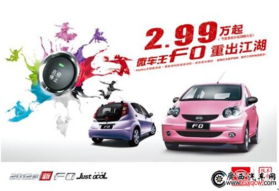 比亞迪F0是比亞迪在微型車領(lǐng)域推出的戰(zhàn)略性小車,自上市以來,因其炫酷的外觀和極高的性價比一直保持著熱銷勢頭,多次蟬聯(lián)銷量冠軍,已經(jīng)擁有超過36萬輛的市場保有量。作為升級車型,2012款新F0在外形、配置等多方面都有著驚喜的升級,更在金九銀十來臨之際把實(shí)惠進(jìn)行到底,不僅全系享3000元節(jié)能惠民補(bǔ)貼,鉉酷型更在此基礎(chǔ)上最高優(yōu)惠4000元,2.99萬元起價,還增推伊甸粉、紫羅蘭兩色紀(jì)念版,受到了很多年輕消費(fèi)者的熱烈追捧。