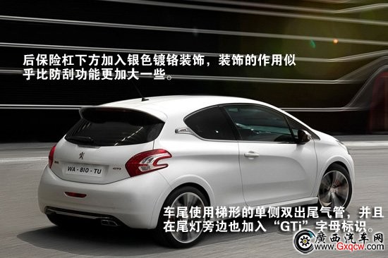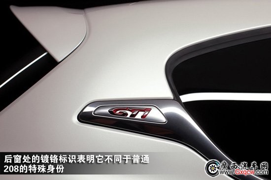 車身側(cè)面,后窗處的鍍鉻標(biāo)識(shí)表明它不同于普通208的特殊身份。而車尾方面變化較多,保險(xiǎn)杠下方加入銀色鍍鉻裝飾,裝飾的作用似乎比防刮功能更加大一些。車尾使用梯形的單側(cè)雙出尾氣管,并且在尾燈旁邊也加入“GTi”字母標(biāo)識(shí)。