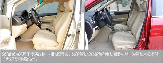 在座椅配置方面,S6和H6均采用了皮質(zhì)座椅,為車內(nèi)乘用者提供了良好的乘用舒適性。在座椅調(diào)節(jié)能力方面,兩者的后排座椅都可進(jìn)行靠背角度調(diào)節(jié),為后排乘客提供了乘用舒適性。相較而言,S6的駕駛位座椅帶有8向電動調(diào)節(jié)功能,為駕駛?cè)藛T提供了更好的乘用舒適性。