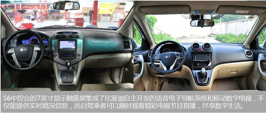 在多媒體配置方面,S6采用了DVD多媒體系統(tǒng),并帶有AUX/USB的外接音源接口,而H6只有AUX的外接音源接口。此外,在S6的車內(nèi)配置上,裝載了Keyless無鑰匙系統(tǒng),只需攜帶智能鑰匙便可輕松實現(xiàn)無鑰匙進(jìn)入、一鍵啟動、電子防盜、尋車等功能。S6中控臺的7英寸顯示觸摸屏集成了比亞迪自主開發(fā)的語音電子導(dǎo)航系統(tǒng)和移動數(shù)字電視,不僅能提供實時路況信息,而且駕乘者可以隨時觀看精彩電視節(jié)目直播,盡享數(shù)字生活。S6還配備了5.1聲道9揚(yáng)聲器附帶獨(dú)立功放汽車影院,對音響有要求的人可能會更喜歡,而H6在娛樂性配置上就要遜色不少。