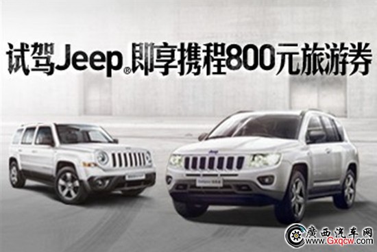 即日起至11月15日登錄Jeep官網(wǎng)報名參加“體驗Jeep,尊享優(yōu)惠旅游”活動,到廣匯廣西機電弘菱進口Jeep4S店,試駕全系車型即可享受800元攜程度假旅游抵用券。