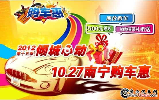 2012年10月27日,南寧遠(yuǎn)昌攜手寶駿汽車,走進(jìn)大嘉匯東盟國(guó)際商貿(mào)港參與超級(jí)團(tuán)購(gòu)大優(yōu)惠活動(dòng),活動(dòng)當(dāng)天特價(jià)車限量供應(yīng),享受僅此一天的優(yōu)惠!當(dāng)天到場(chǎng)網(wǎng)友不僅可獲贈(zèng)簽到禮、集點(diǎn)好禮,還有購(gòu)車抽好禮,贈(zèng)送豪華大禮包!前80名電話報(bào)名購(gòu)車的網(wǎng)友更有機(jī)會(huì)可享受由主辦方送出的500元現(xiàn)金!汽車盛宴,期待您的參與,搶在限購(gòu)前,購(gòu)得您的愛車!