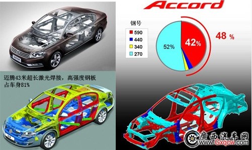 雅閣歷來為國(guó)人所詬病的安全問題,邁騰B7L也做得非常出色。43米超長(zhǎng)激光焊接技術(shù),熱成型鋼板占車身總重16%,高強(qiáng)度鋼板車身總重由上一代74%提高到81%,車身強(qiáng)度更高,安全等級(jí)達(dá)到N-CAP5星級(jí)標(biāo)準(zhǔn)。增加了后排氣囊,全車氣囊數(shù)達(dá)到8個(gè),乘坐更讓人放心。而雅閣只是普通的點(diǎn)焊接,鋼板覆蓋率低,安全氣囊也只有5個(gè),安全問題令人堪憂。