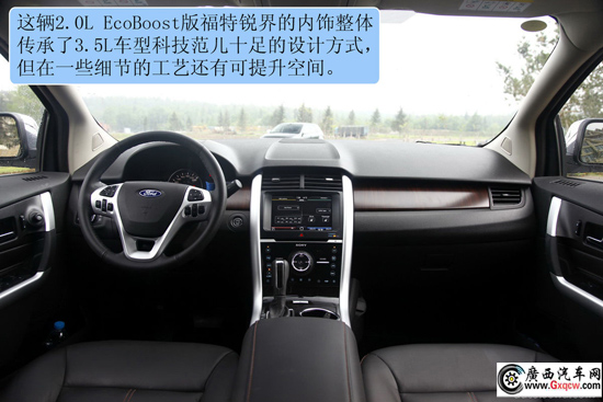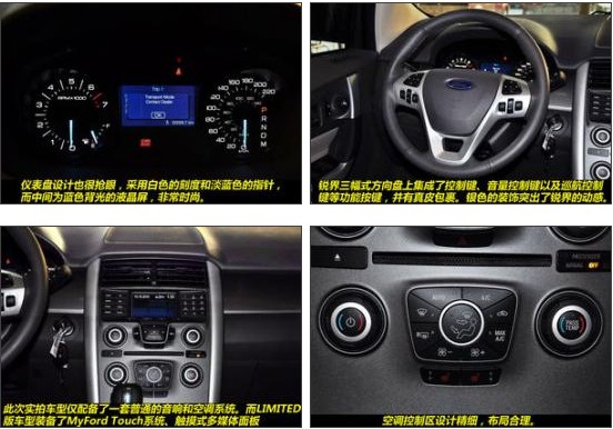 2012款福特銳界2.0T精銳版——中控:低配的2.0T銳界在配置上要寒酸很多,除了沒有大屏幕顯示屏外,與高配相比,還少了SONY的音響套件和電子液晶儀表盤,同時沒有全景天窗,不過整體精細的做工還是傳承了下來,與高配價格相差6萬多左右,沒有上述的一切應(yīng)該可以忍了。