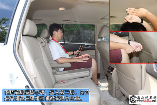 2012款豐田漢蘭達2.7L兩驅(qū)7座豪華版——空間:內(nèi)部空間就不多提了,三款車型幾乎都十分充裕,而座椅的靈活實用性是漢蘭達的一個最大賣點,采取了上面兩款車型沒有的7座設(shè)計,尤其在第二排和第三排,在同級對手中優(yōu)勢相當(dāng)明顯,甚至可以媲美很多商務(wù)MPV車型。保持第一排座椅不動,來到后排,無論是第二排還是第三排空間均很充裕。