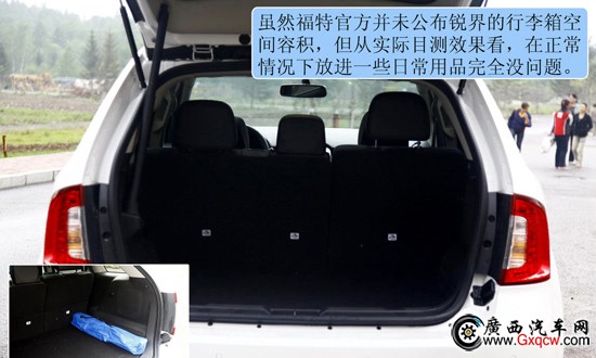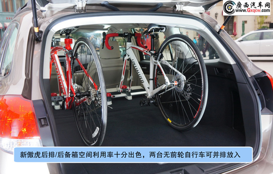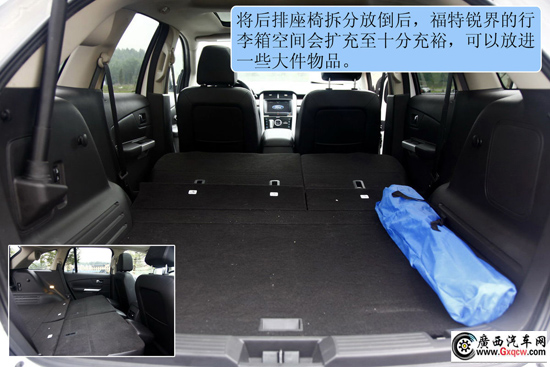 2012款福特銳界2.0T精銳版——后備箱:超過2米8的軸距同時為后備箱營造出了龐大的儲物空間,例如上面傲虎中的自行車放入銳界中也完全不成問題,甚至只多不少。