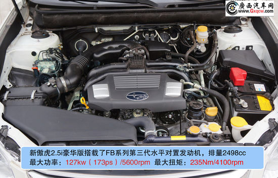 2013款斯巴魯傲虎2.5L豪華版——動力/懸掛:2745mm新傲虎搭載了第三代斯巴魯水平對置發(fā)動機,包括2.5L和3.5L排量,改進過的新型2.5L發(fā)動機具有更好的性能指標,更卓越的平衡結構和穩(wěn)定的動力輸出,功率從原來的123kw提升到127kw,扭矩從229nm提升到235nm,綜合油耗卻從8.5L/km降低到8.2L/km,并可以使用93號(京92號)汽油。此外與之搭配的是新型的縱置鏈條式無級變速器(2.5L車型),重量更輕,換擋更自然平穩(wěn)流暢。