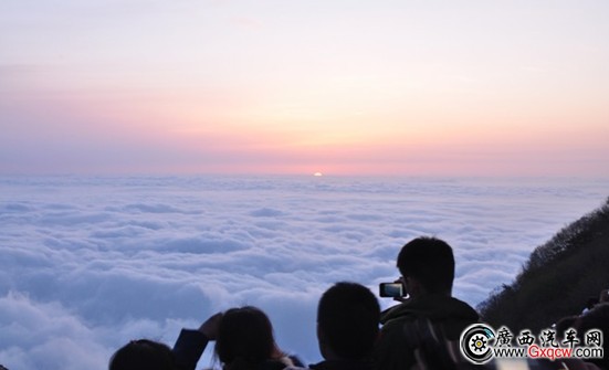 大約在凌晨五點(diǎn)半左右,東方天際出現(xiàn)了魚肚白,洶涌的云海已經(jīng)開始擴(kuò)散開來(lái),能在泰山之巔看見(jiàn)云海也算是不虛此行。隨后在人們的歡呼聲中,太陽(yáng)漸漸探出了頭,在云海的簇?fù)硐,一輪火球冉冉升起。整個(gè)過(guò)程只持續(xù)了短短幾分鐘,但是壯觀的景象卻很令人難忘,當(dāng)然歡呼之余,我們也沒(méi)忘拍下那激動(dòng)人心的一刻。