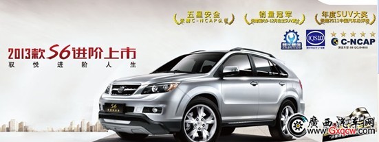 除了這些,新增的S6 2013款精榮型還有您意向不到的更好更高端的配置,價(jià)格漲幅不大,但是功能配置相比2012款有了很大的突破,可以充分滿足您的城市駕駛,甚至是糟糕野外路況的需要。