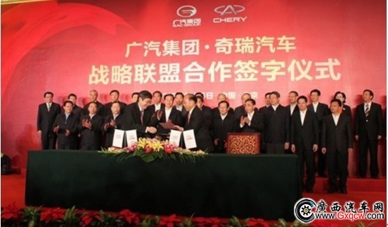 11月6日,在北京釣魚臺國賓館,廣汽與奇瑞正式簽訂戰(zhàn)略聯盟合作協(xié)議。以在整車、核心零部件和新能源技術研發(fā)、體系能力建設等數個領域“展開深度合作與共享”。