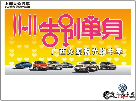 又到一年11.11時,你脫光了嗎?11月10-11日,蒞臨上海大眾廣西眾源4S店,超低特價現車,絕對有適合您的“小老婆”,數量有限,先訂先“脫光”喔。