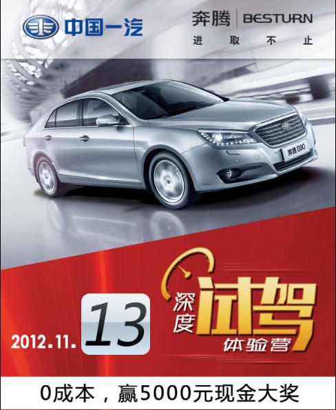 廣西鉅榮一汽奔騰將于11月24日在廣西體育中心舉行奔騰B90深度試駕活動,即日起鉅榮奔騰將開展系列精彩活動等您來挑戰(zhàn)!