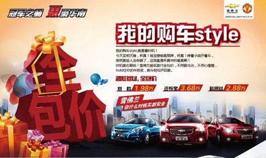 今年上半年,雪佛蘭借勢第一季度銷量位列同級之首,推出冠軍系列車型。時(shí)值年底,相關(guān)消息透露,雪佛蘭即將新推由B級新貴邁銳寶、暢銷車典范科魯茲和最受歡迎小車新賽歐主打的2013冠軍系列車型,并將分別以3.68萬、2.88、1.98萬“車價(jià)+買車購置稅+保險(xiǎn)費(fèi)+上牌費(fèi)”的超低首付全包價(jià)回饋廣大華南消費(fèi)者。