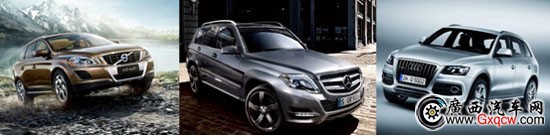 SUV市場的快速增長說明人們對汽車的要求已經從過去的單一化向多元化轉變,無論是外觀、動力、安全乃至環(huán)保,儼然成為人們購車時考慮的因素。今天我們就選取當前中級豪華SUV市場上比較受歡迎的三款主流車型——沃爾沃XC60 3.0 T6 AWD智雅版、奔馳GLK 300 4MATIC和奧迪Q5 3.2 FSI運動款做一次橫向對比,三款車型價格分別為58.99萬元、61.80萬元、65.80萬元,那么在此價格區(qū)間內,誰更物有所值呢?