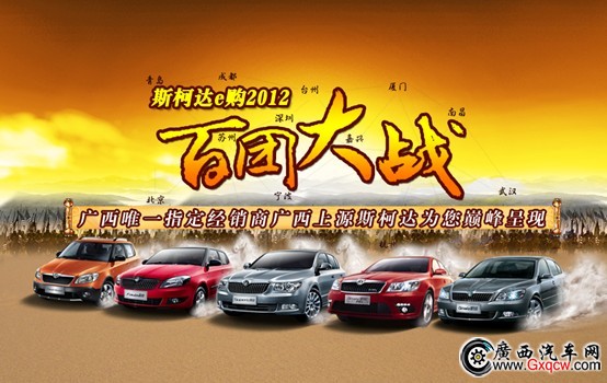 上海大眾斯柯達(dá)五周年慶巔峰回饋5年來,最惠時(shí)刻,不容錯(cuò)過!一半是勢不可擋的澎湃激情,一半是永恒無敵的經(jīng)典設(shè)計(jì)!選擇斯柯達(dá),你可以在兩種感覺中找到平衡!斯柯達(dá)e購2012百團(tuán)大戰(zhàn)廣西上源站:2012年11月24日14:00在秀廂大道上源斯柯達(dá)展廳隆重啟航!