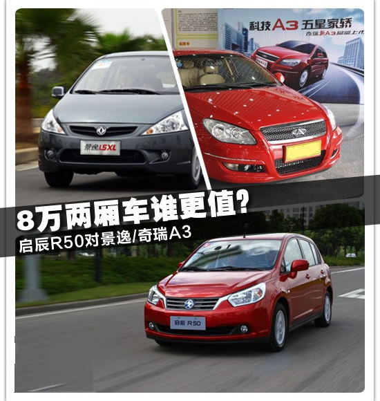 自主品牌也逐漸認(rèn)識到這塊市場的重要性,涌現(xiàn)了一批新產(chǎn)品,今天我們就來重點(diǎn)看看自主品牌的緊湊兩廂車有什么好選擇,以剛剛上市不久的合資自主新軍——啟辰R50為首,還有一款時尚大兩廂——東風(fēng)風(fēng)行景逸,當(dāng)然還有得到廣大用戶一致認(rèn)可的高性價比國民車——奇瑞A3。