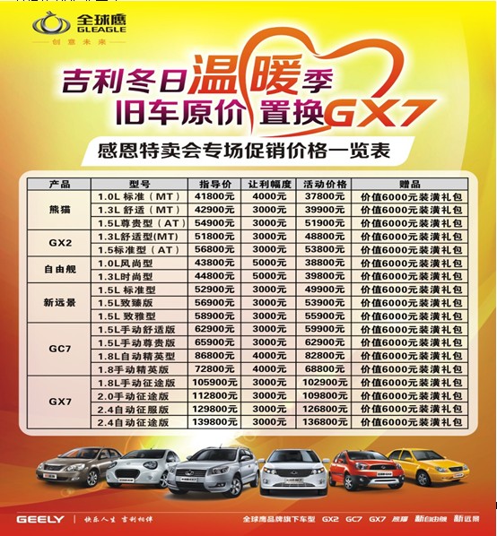 活動對象:吉利車型