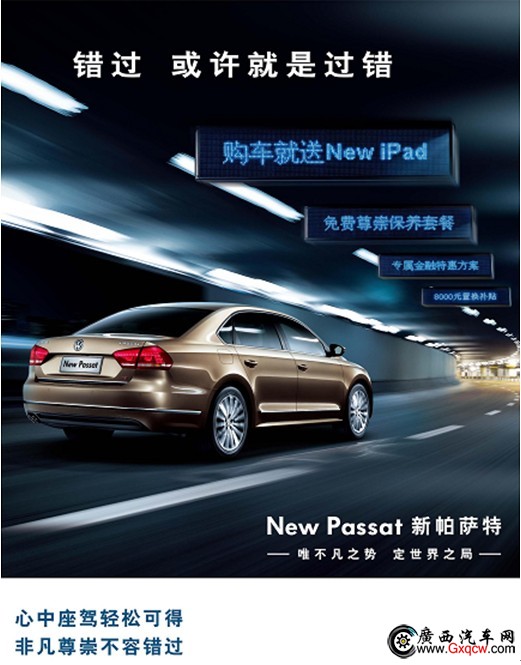 禮遇一:購車即贈New iPad,更可獲贈5萬公里“暢行無憂”尊崇保養(yǎng)套餐;如置換新帕薩特,額外再享8000元現(xiàn)金折讓。
