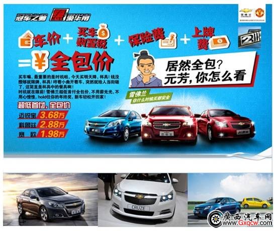 編輯短評:無車一族看到下面的信息更要hold住,屬于屌絲們的“華麗逆轉(zhuǎn)”已吹響征集號角!雪佛蘭即將推出新賽歐、科魯茲、邁銳寶2013款冠軍系列車型,分別以1.98萬、2.88、3.68萬“車價+買車購置稅+保險費+上牌費”的超低首付全包價傾情巨獻(xiàn)東盟車展。相比前面三款編輯推薦的“只可遠(yuǎn)觀而不可褻玩”的“冠軍”車型,雪佛蘭2013款冠軍車系是唯一一款能讓廣大百姓隨心所欲就能開走的“冠軍”車型。