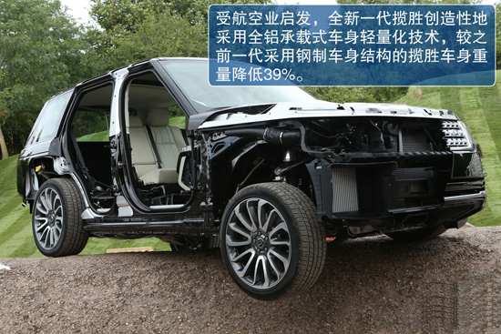 底盤(pán)采用全鋁式車(chē)架結(jié)構(gòu),官方聲稱整車(chē)重量比現(xiàn)款車(chē)型減輕了將近400公斤,這項(xiàng)改變無(wú)疑對(duì)新車(chē)的公路操控性能有顯著的提升。也從側(cè)面體現(xiàn)了新攬勝?gòu)囊话言揭昂檬郑虺鞘邢蠕h所轉(zhuǎn)變。