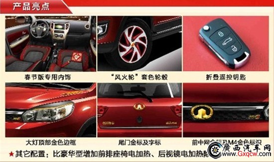 配置上,哈弗M4春節(jié)版在現(xiàn)款豪華型基礎(chǔ)上增加了尊貴、人性化配置,如前排座椅電加熱、后視鏡電加熱除霜、折疊鑰匙等。